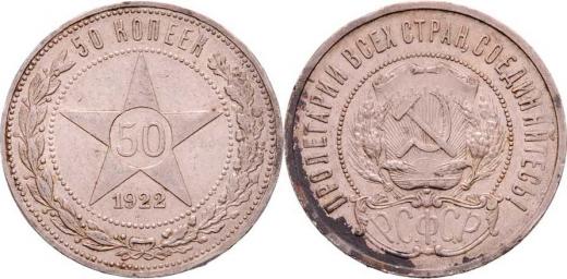 50 Kopějek 1922 PL, Y.83 (Ag900), 10.018g, hr., nep.rysky, skvrna, patina