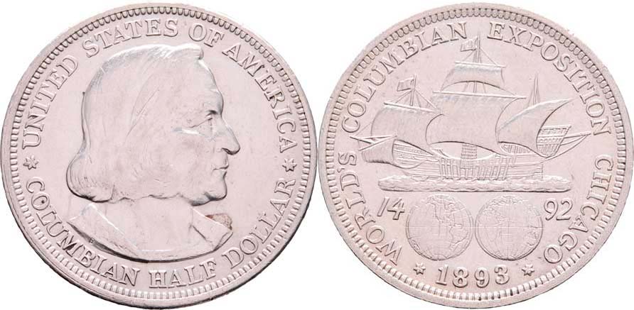 1/2 Dolar 1893 - Kolumbovská výstava, KM.117 (Ag900), 12.427g, hr., dr.rysky, skvrnky