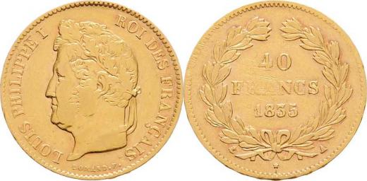 40 Frank 1835 A, Paříž, KM.747.1, 12.831g, revers poškrábaný, dr.hr., dr.rysky