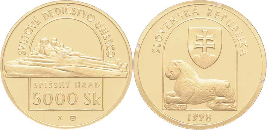 5000 Koruna 1998 - Spišský hrad - světové dědictví UNESCO, KM.46 (Au900, 9.50g, pouze 6.000ks), kapsle, etue, certifikát, přebal