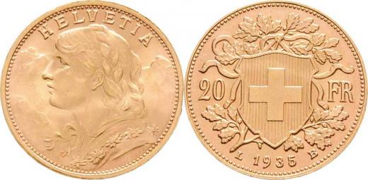 20 Frank 1935 L-B, KM.35.1 (Au900), 6.455g, nep.hr., nep.rysky, téměř