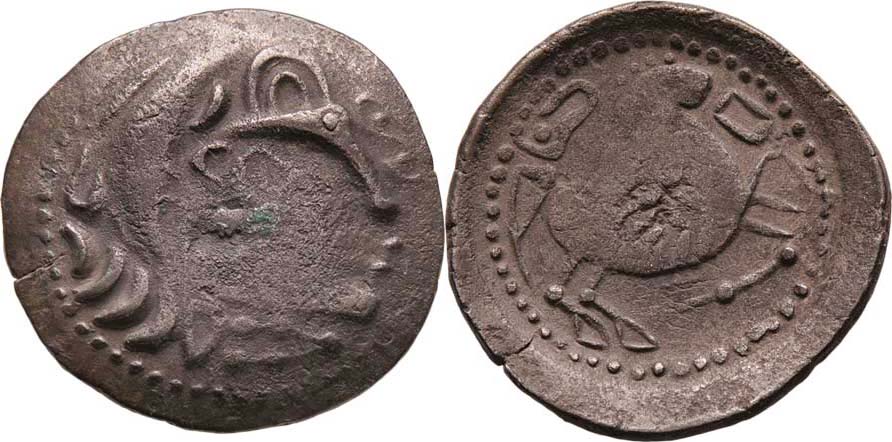AR leh.tetradrachma - typ Scyphatus - velmi stylizov. hlava / stylizovaný kůň s náznakem jezdce, Lanz.568, Göbl.22/254-1, 7.652g, dr.vady materiálu, patina R!