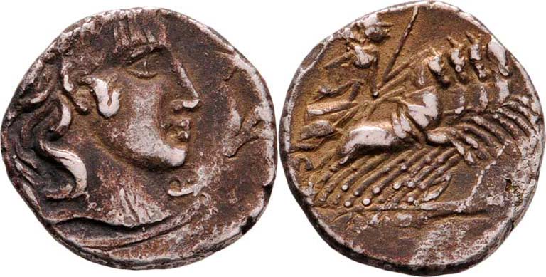 AR Denár, Hlava Apolóna zprava, nápis "PANSA." / Minerva na quadrize zprava, nápis "C.VIBIVS.C.F.", Crawford.342/5, Seaby.Vibia.1b, exc., nedor., patina