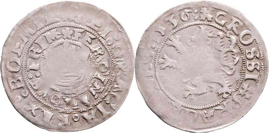 Pražský groš 1536, K.Hora-Jeptiška, Chv.C13/c.K, královská koruna s tečkami, J.4, MKČ.70, 2.898g, nep.nedor., nep.dvojráz, pěkná patina