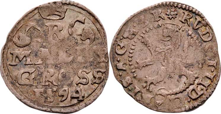 Malý groš 1594, K.Hora-Herold, HN.8 (opis 7a), nápis " MALEY / GROSS / 1594 ", 0.772g, mírně exc., nedor., pěkná patina