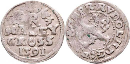 Malý groš 1591, Č.Budějovice-Mattighoffer, HN.25a (7a), nápis " MALEY / GROSS / 1591 ", 0.952g, nedor., pěkná patina