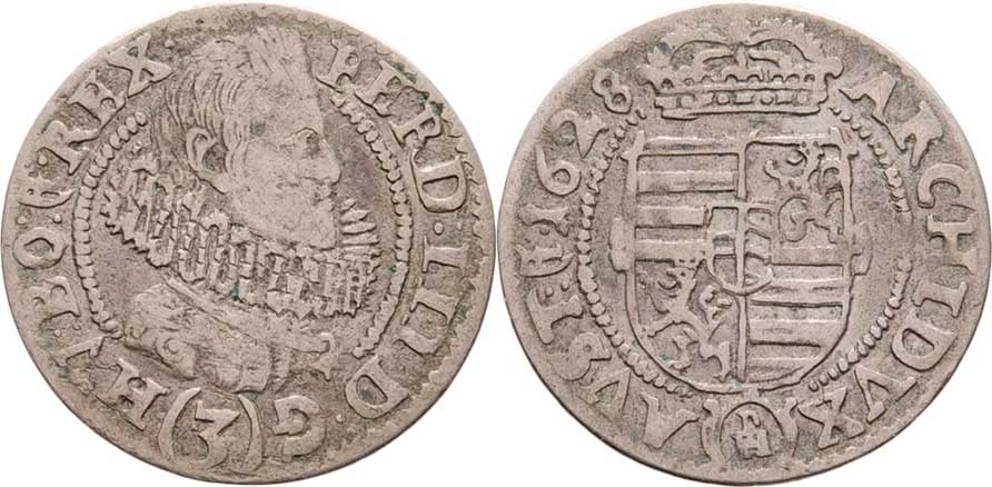 3 Krejcar 1628 PH, Petr Hemma, NŠ.110, MKČ.1334, 1.596g, pěkná patina