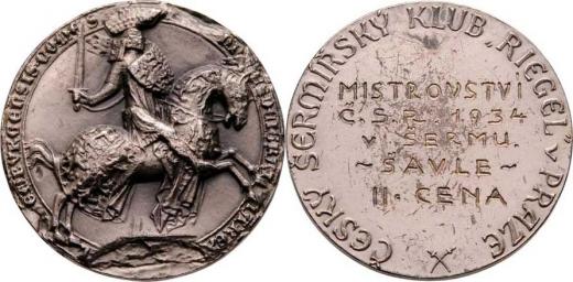 Praha 1934 - klub Riegel - mistrovství ČSR v šermu šavlí - II.cena, Nesign., patin. Ag987, 30mm, 16.433g