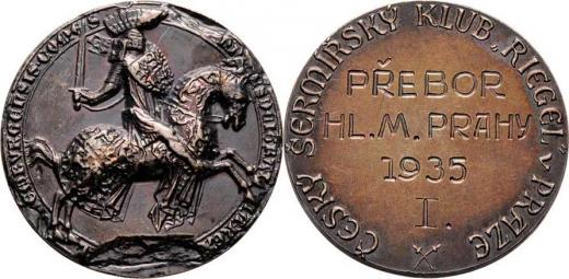 Praha 1935 - klub Riegel - přebor hl.města - I.místo, Nesign., patinované Ag987, 30mm, 15.695g, krásná pat.
