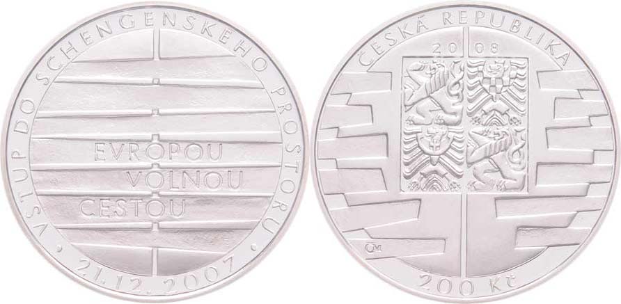 200 Kč 2008 - Vstup do Schengenského prostoru, KM.99 (Ag900, 13.00g, 16.000ks), kapsle, etue, karta