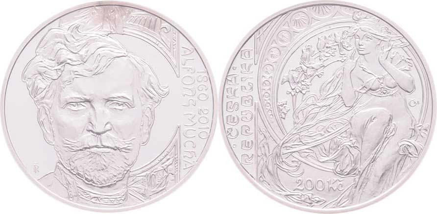 200 Kč 2010 - 150 let narození Alfonse Muchy, KM.114 (Ag900, 13.0g, 15.900ks), kapsle, etue, karta
