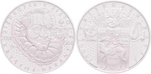 200 Kč 2014 - 450 let narození Kryštofa Haranta z Polžic a Bezdružic (Ag900, 13.0g, 11.700ks), kapsle, etue, karta