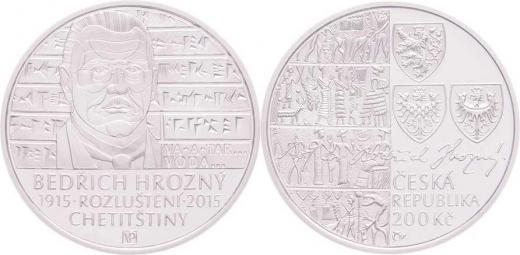 200 Kč 2015 - 150 let rozluštění chetitštiny Bedřichem Hrozným (Ag900, 13.0g, 10.900ks), kapsle, etue, karta