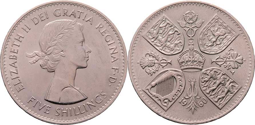 5 Shillings 1960 - Britská výstava v New Yorku, KM.909 (CuNi), 28.220g, nep.rysky, pěkná patina R!