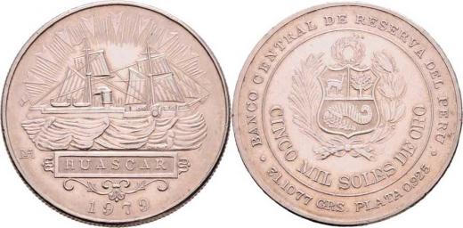 5000 Sol 1979 - paroplachetní loď Huaskar, KM.276, nep.hr., nep.rysky, téměř