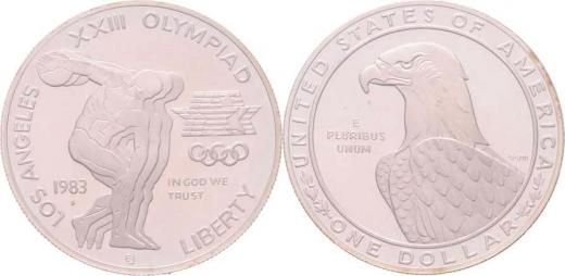 Dolar 1983 S (Ag) - LOH Los Angeles 1984, KM.209, 26.644g, nep.rysky, patina