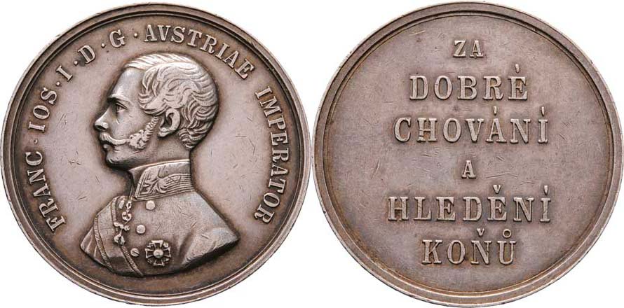 AR česká medaile Za dobré chování a hledění koňů - hlava zleva, latinský opis / český nápis, Nesign. (Tautenhayn), ČS.1531, Ag 33mm, 18.399g, dr.hr. R!
