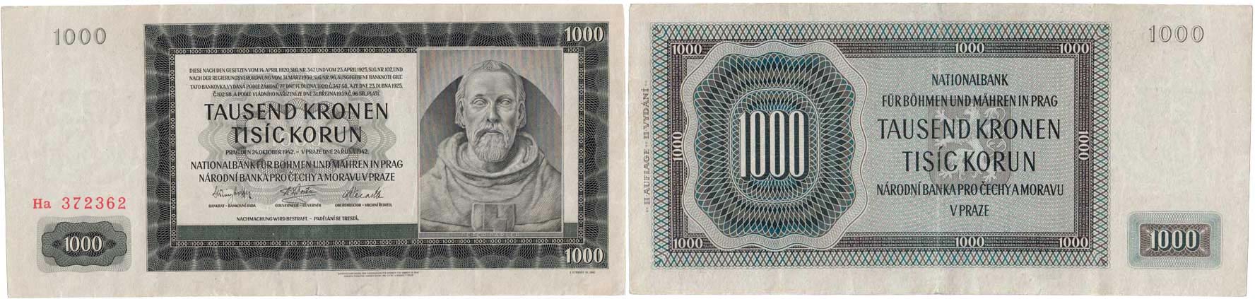1000 Koruna 1942 - 2.vyd.- sér. Ha, BHK.39a "neperf."