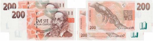 200 Koruna 1998, série F31, BHK.CZ20 "neperf." dvě následující čísla