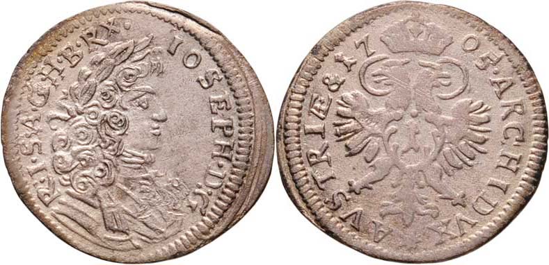 Krejcar 1705, Mnichov, M-A.204, 0.944g, mírně exc., pěkná patina R!