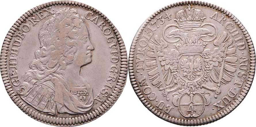 1/4 Tolar 1734, Hall, M-A.234, 7.110g, nep.hr., pěkná patina, téměř