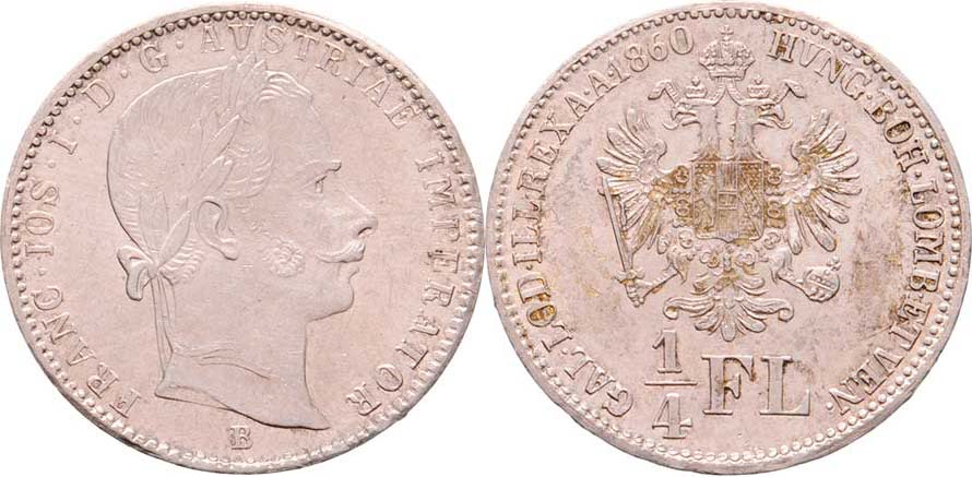 1/4 Zlatník 1860 B, 5.343g, nep.hr., nep.rysky