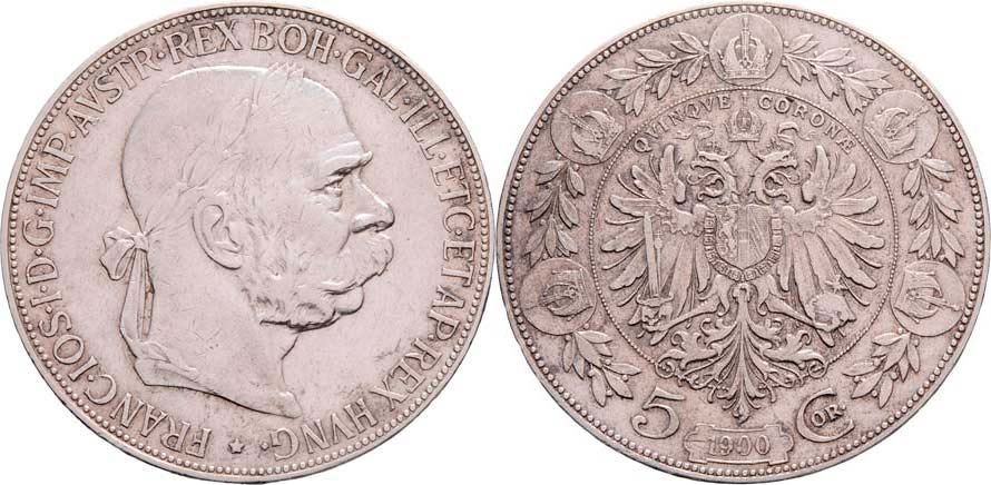 5 Koruna 1900, 23.869g, nep.hr., dr.rysky, patina