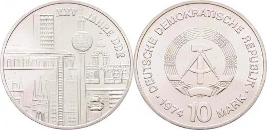 10 Marka 1974 - 25 let DDR, KM.51 (Ag625, 17.00g, 70.000 ks), kartička R!