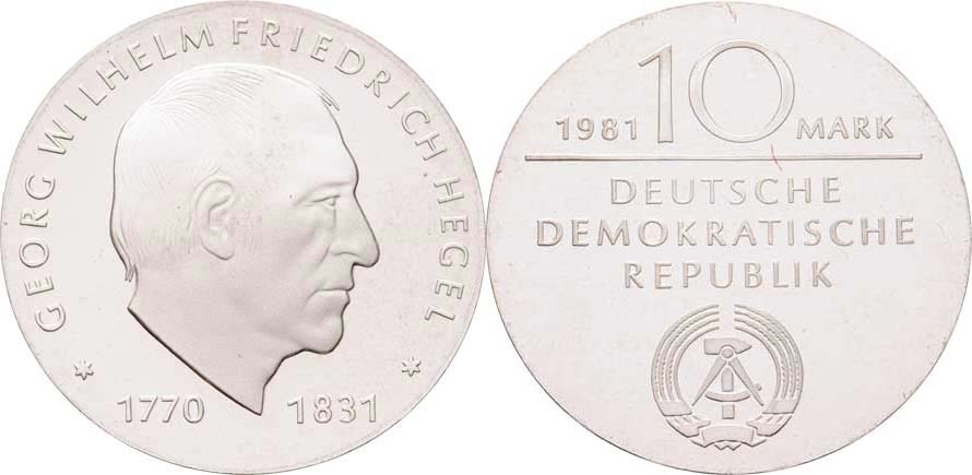 10 Marka 1981 - Georg Wilhelm Friedrich Hegel, KM.81 (Ag500, 17.00g, 5.500 ks), patina, kartička RR!