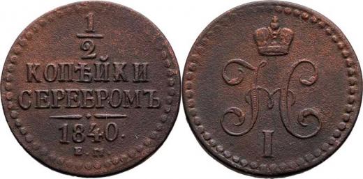 1/2 Kopějka 1840 EM, Jekatěrinburg, Cr.143.1 (měď), 5.034g, mírně kor., patina