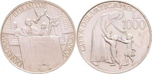 1000 Lira 1996 R - XVIII.rok pontifikátu, Y.278 (Ag835, 14.6g, cca 80.000 ks)