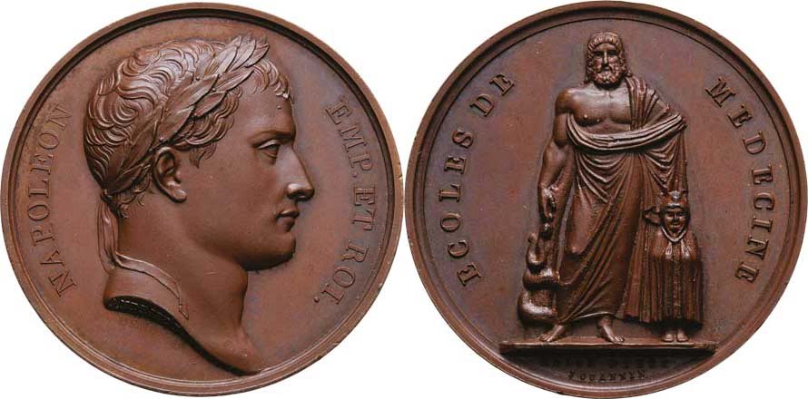Andrieu, Jouannin a Denon - lékařská akademie 1805 - poprsí zprava, opis/ Aeskulap a student, opis, Sign., bronz 40mm, 37.328g, Zeitz.53, krásná patina