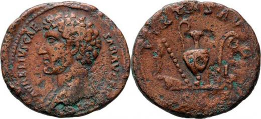 AE As, Rv:"PIETAS.AVG.S.C.", bohoslužebné náčiní, podobý jako S.1299, RIC.1240c - mincovna Řím - ražba z let 140 - 144, koroze, patina