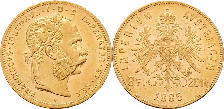 8 Zlatník 1885, 6.441g, nep.hr., nep.rysky, téměř