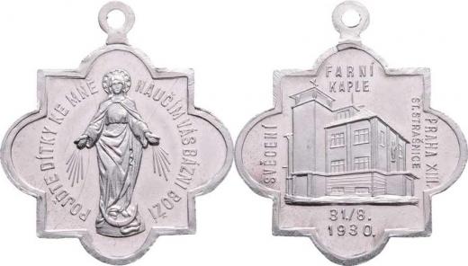 Svěcení farní kaple 31.8.1930, Nesign., hliník 35x35 mm s původním raženým ouškem, Přib.723, stopy prasklého razidla, nep.rysky