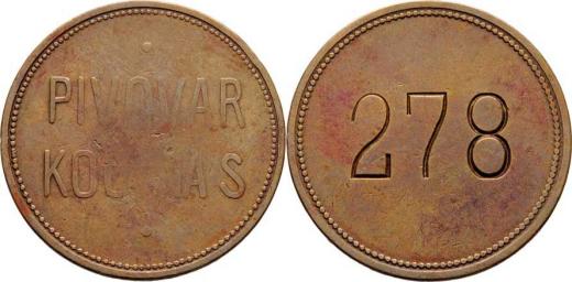 Kout na Šumavě, pivovar - 1 L.(litr), Likovský.183, číslo 278, mosaz 26mm, nedor., dr.rysky, pěkná pat.