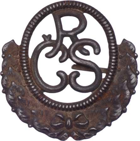 Čepicový odznak - typ 1918, Ves.C18.h, chybí jedna ze dvou upínacích patek