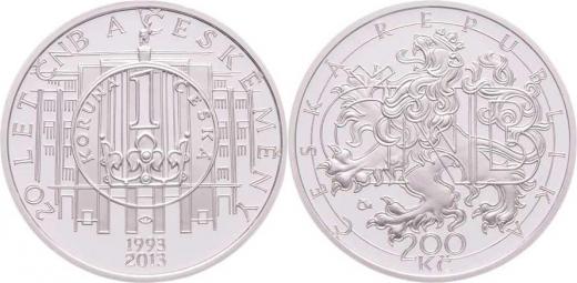 200 Kč 2013 - 20 let ČNB a české měny, KM.135 (Ag900, 13.0g, 18.700ks), kapsle, etue