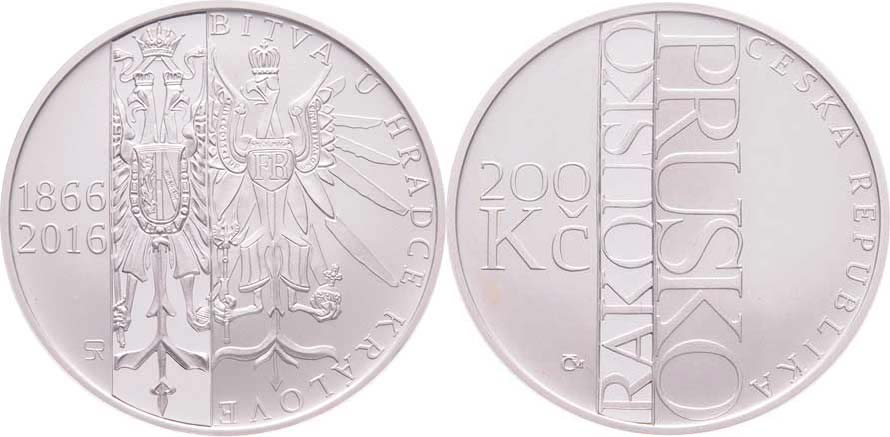 200 Kč 2016 - 150 let bitvy u Hradce Králové (Ag925, 13.0g, 10.000ks), kapsle, etue, karta