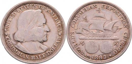 1/2 Dolar 1893 - Kolumbovská výstava, KM.117 (Ag900), 12.443g, nep.hr., dr.rysky, pěkná patina