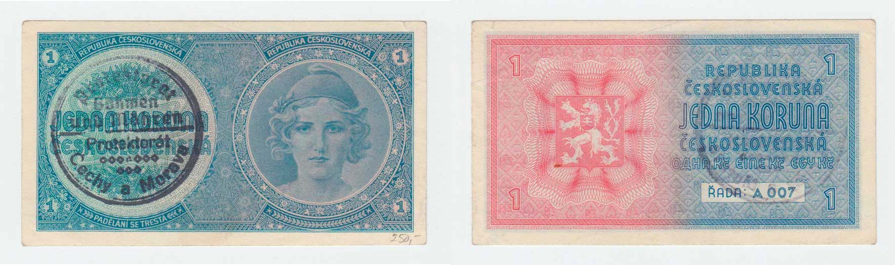 1 Koruna b.l.-ruční r., sér.A007, BHK.28a "neperf."