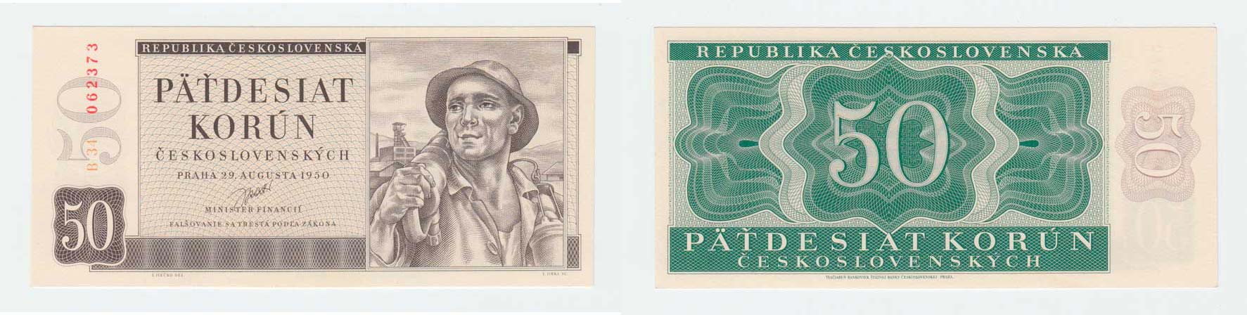 50 Koruna 1950, série B34, BHK.85b "neperf."
