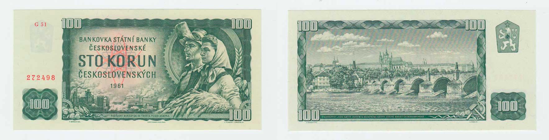 100 Koruna 1961, série G51, BHK.98e1 "neperf."