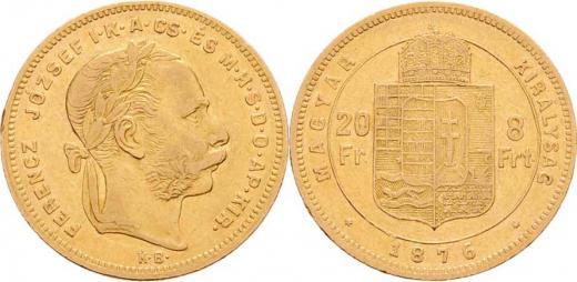 8 Zlatník 1876 KB, 6.436g, dr.hr., nep.rysky, pěkná patina