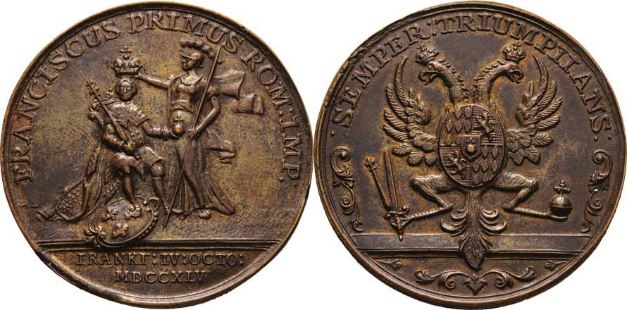 Nesign. - medaile na korun. ve Frankfurtu 1745 - Aténa korunuje císaře, opis a nápis / císařský orel, opis, bronz 42 mm, M.1773, Nov.D.11a, patina