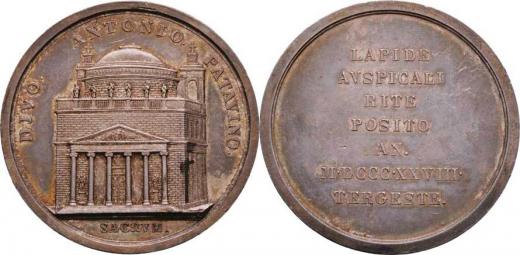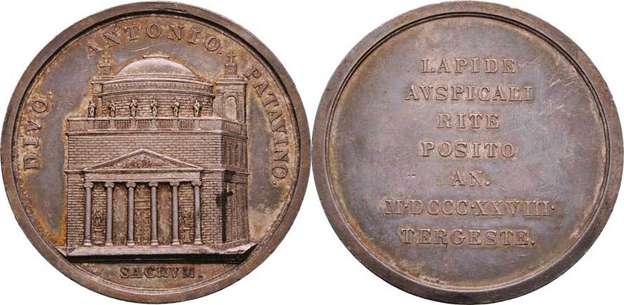 Heuberger - Chrám sv. Antonína Paduánského 1828 - průčelí, opis a nápis / 7-řádkový nápis, Sign., Nepunc., 57mm, 53.547g, dr.hr., dr.rysky, patina