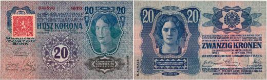 20 Koruna 1913 - kolkovaná, 2.vyd., sér.1070, BHK.3