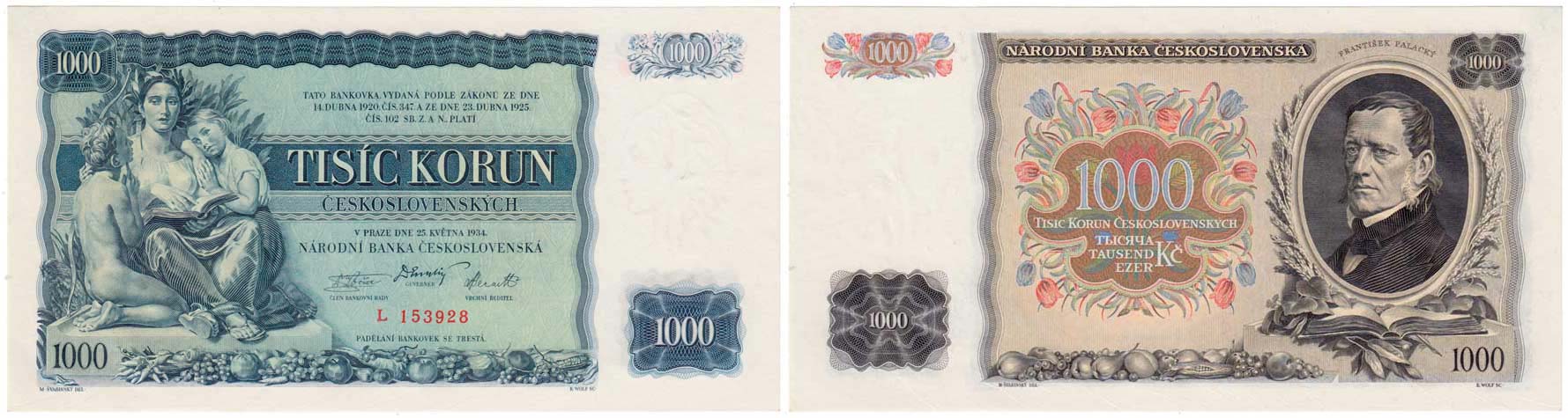 1000 Koruna 1934, série L, BHK.27 "neperf."