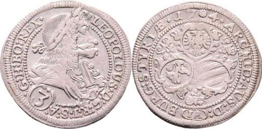 3 Krejcar 1704 IA, Štýrský Hradec-Aigmann, Nech.2242, M-A.203, 1.712g, nep.exc., nedor., patina