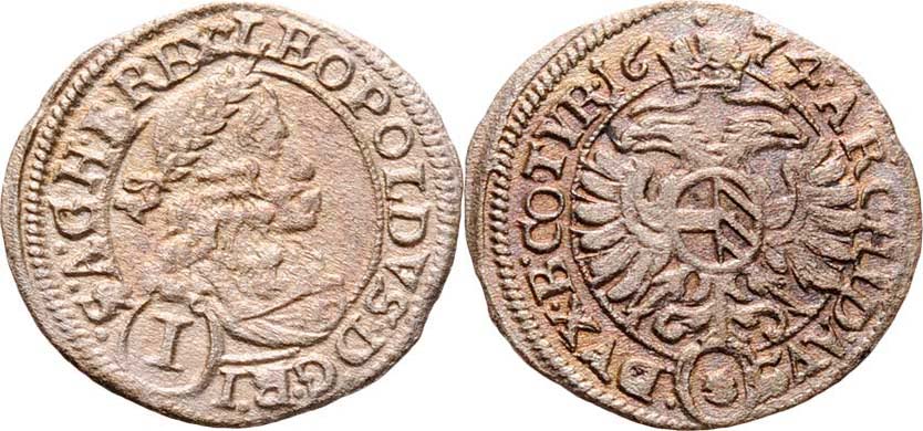 Krejcar 1674, Vídeň-Faber, Nech.1987, M-A.173, 0.707g, pěkná patina